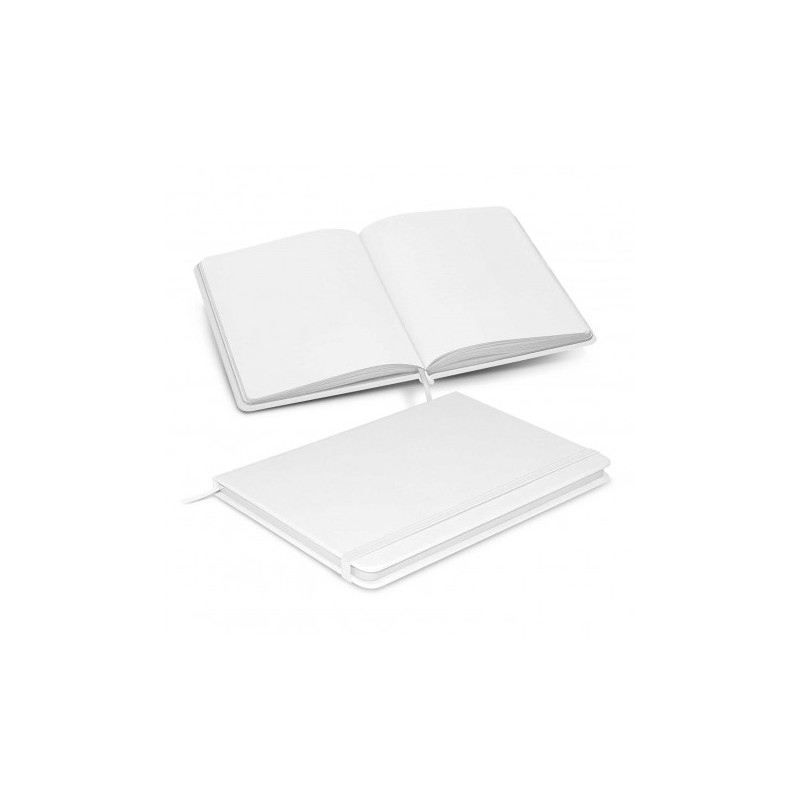 A large-size notebook that has a hardcover with a smart PU finish. It has 96 sheets (192 pages) of 70gsm lined paper, a bookmark ribbon, an elastic closure band and an elastic pen loop.