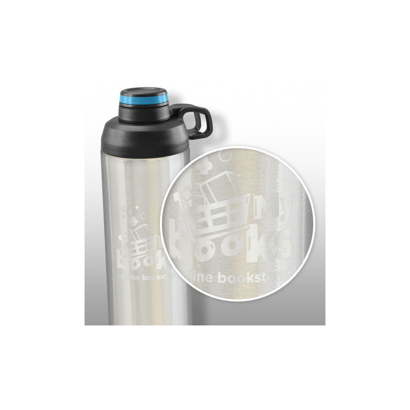 Stylish Swiss Peak 750ml double wall, vacuum insulated stainless steel drink bottle with a smart powder coated finish. It has a secure screw-on lid with a carry handle and a flip-out drinking valve. The valve has a removable silicone mouthpiece for easy cleaning. This precision bottle is BPA-free, and laser engraves to a shiny steel finish. It is...