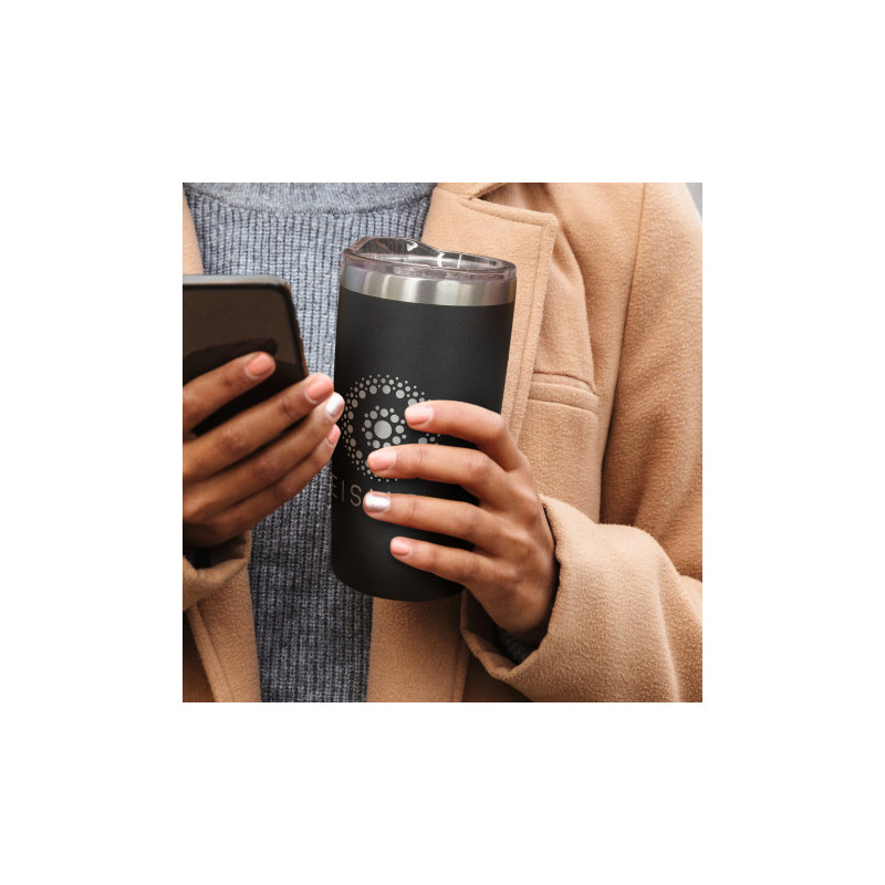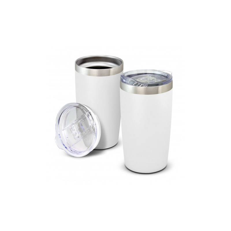 Premium 360ml double wall, vacuum insulated stainless steel coffee cup that will keep drinks hot or cold for hours. It has a transparent push-on, slider lid. Evora is BPA-free, laser engraves to a shiny steel finish and an optional black gift box is available on request. This product is not dishwasher safe and handwashing is recommended.