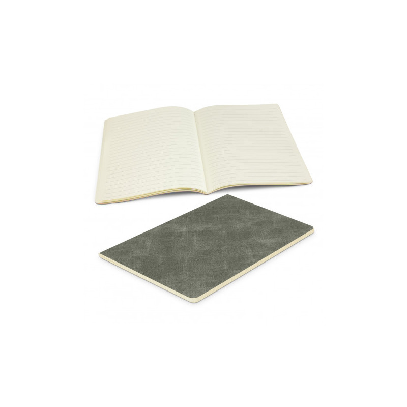 A large-size notebook that has a hardcover with a smart PU finish. It has 96 sheets (192 pages) of 70gsm lined paper, a bookmark ribbon, an elastic closure band and an elastic pen loop.