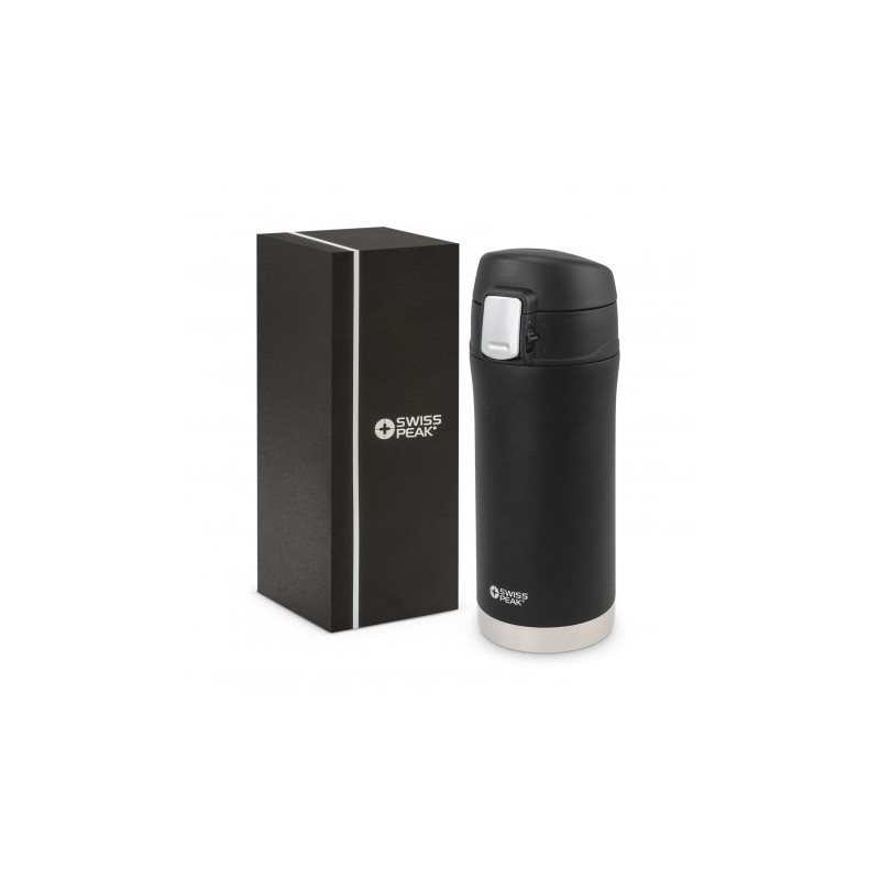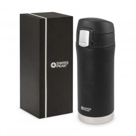 Stylish Swiss Peak 750ml double wall, vacuum insulated stainless steel drink bottle with a smart powder coated finish. It has a secure screw-on lid with a carry handle and a flip-out drinking valve. The valve has a removable silicone mouthpiece for easy cleaning. This precision bottle is BPA-free, and laser engraves to a shiny steel finish. It is...