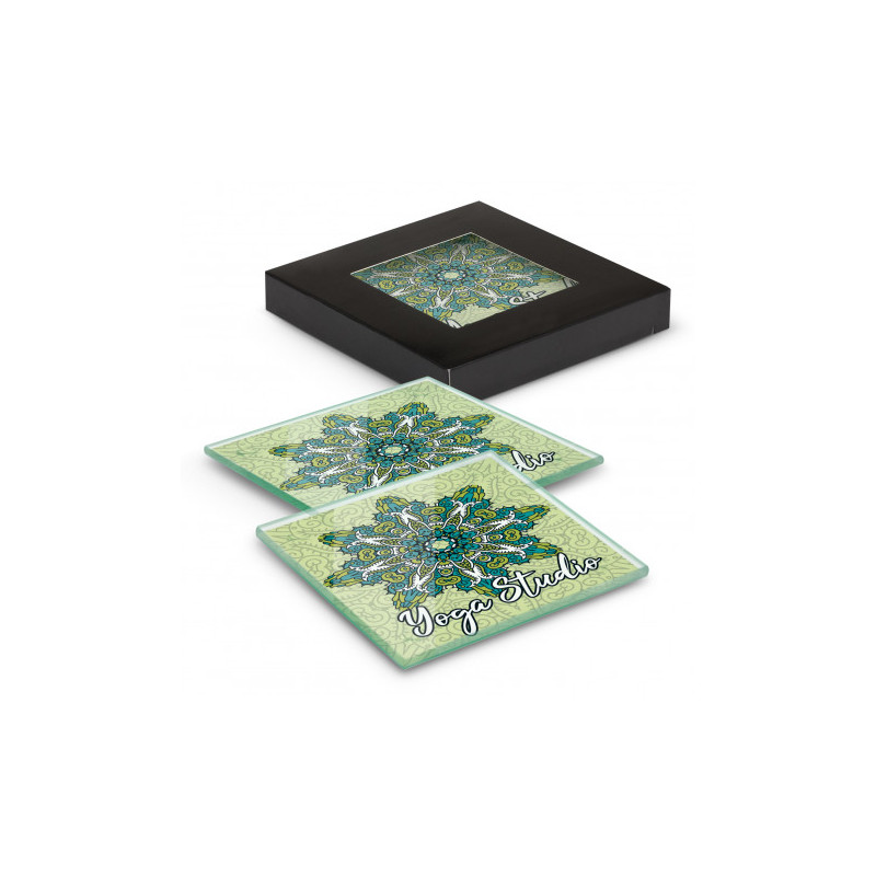 At our company, we offer a range of conference merchandise and products, including the Venice Glass Coaster Set of 2 Square - Full Colour. The minimum order quantities (MOQs) vary depending on the product and how it's decorated—whether printed or otherwise.