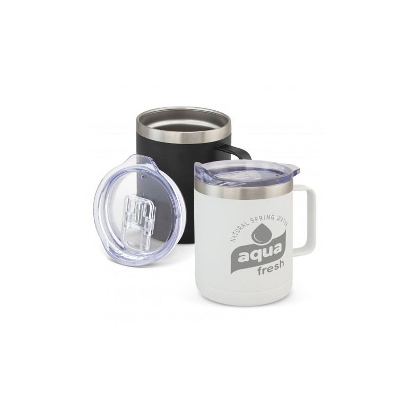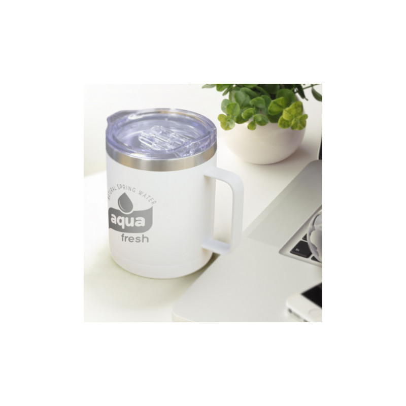Premium 360ml double wall, vacuum insulated stainless steel coffee cup that will keep drinks hot or cold for hours. It has a transparent push-on, slider lid. Evora is BPA-free, laser engraves to a shiny steel finish and an optional black gift box is available on request. This product is not dishwasher safe and handwashing is recommended.