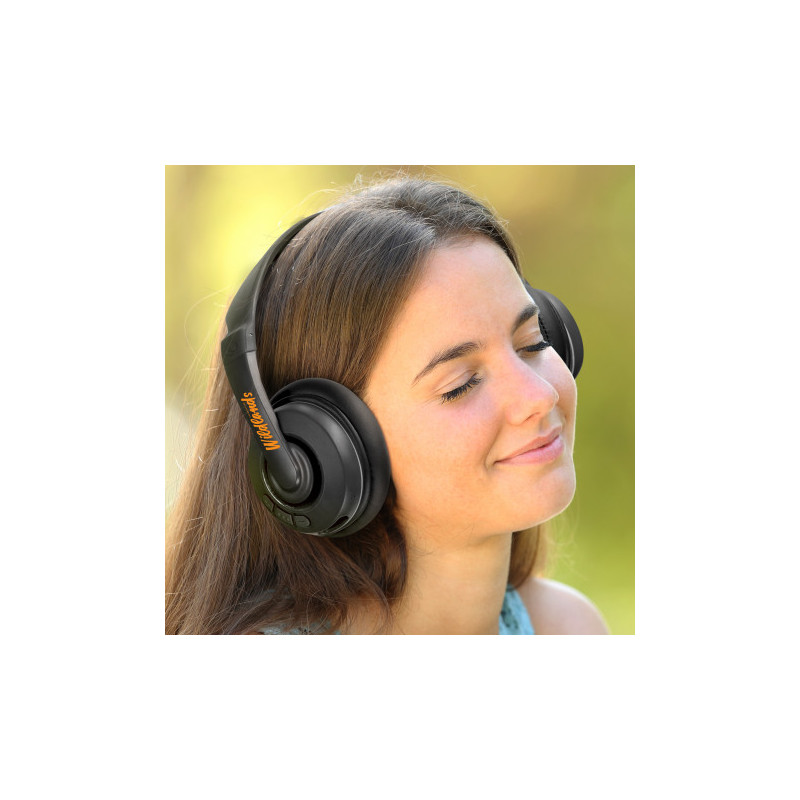 Hyper immersive sound designed to enhance the audible experience. Bluetooth over ear headphones with luxury, adjustable cushioning head band and ear pieces. Foldable for easy portability. Hands free phone call function with built in microphone. Listen to music wirelessly for up to 10metres. Supplied in zippered EVA case. Battery Type: Rechargeable 400mAh...