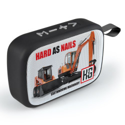 A portable Bluetooth® speaker that includes 3 inchAAA inch batteries. The compact size makes the Whammo Bluetooth® speaker the perfect portable speaker. Bluetooth® working range is 10 meters (33 feet). Media device not included. No small text or small taglines, only bold and solid large font logos.