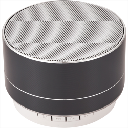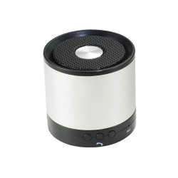 Bluetooth speaker with contrasting aluminium alloy case, auxiliary line input to allows access to smartphones, PC and notebook, built-in 400 mAh Lithium-ion battery, hands-free function, LED power and charge indicators. TF card reader (optional extra cost). Includes 3.5 mm audio cable, USB charge cable and user manual. Material: Aluminium, ABS...