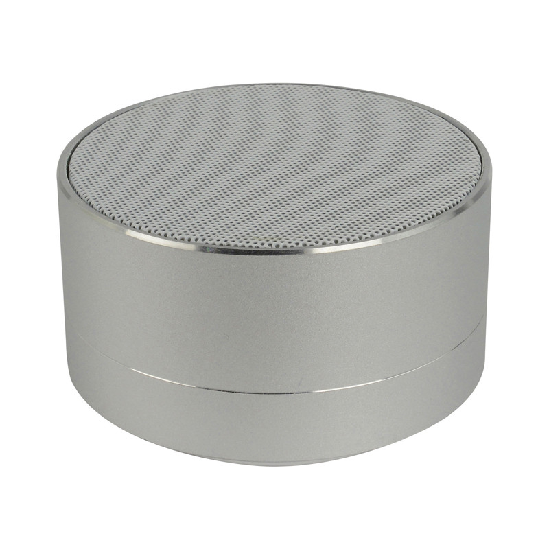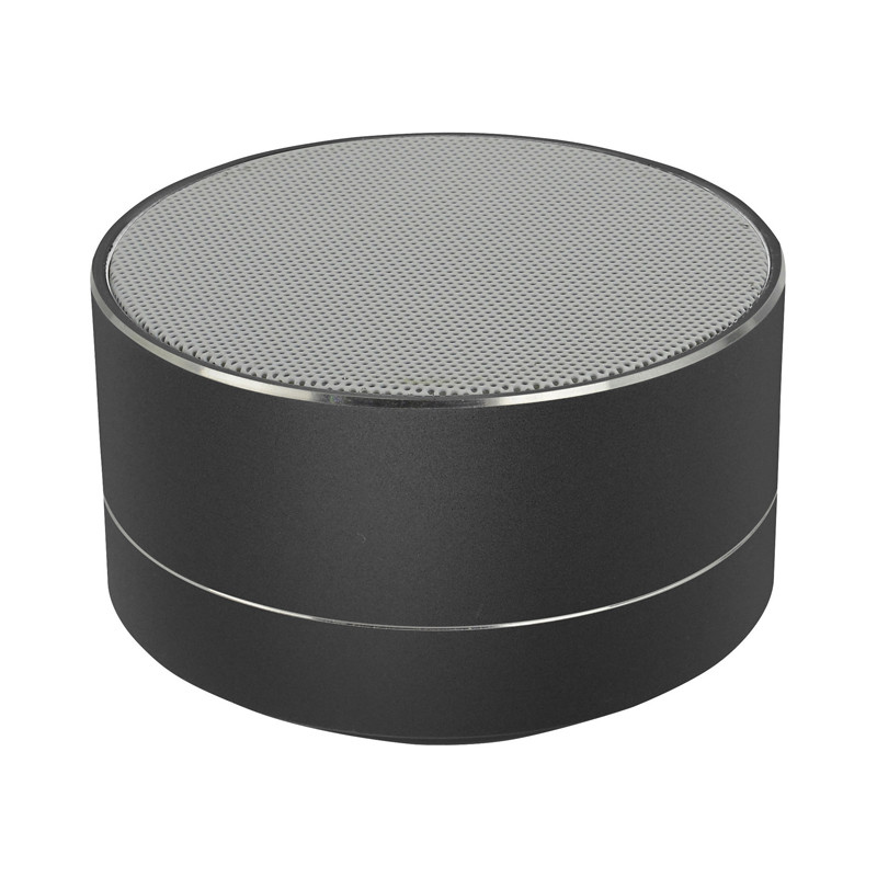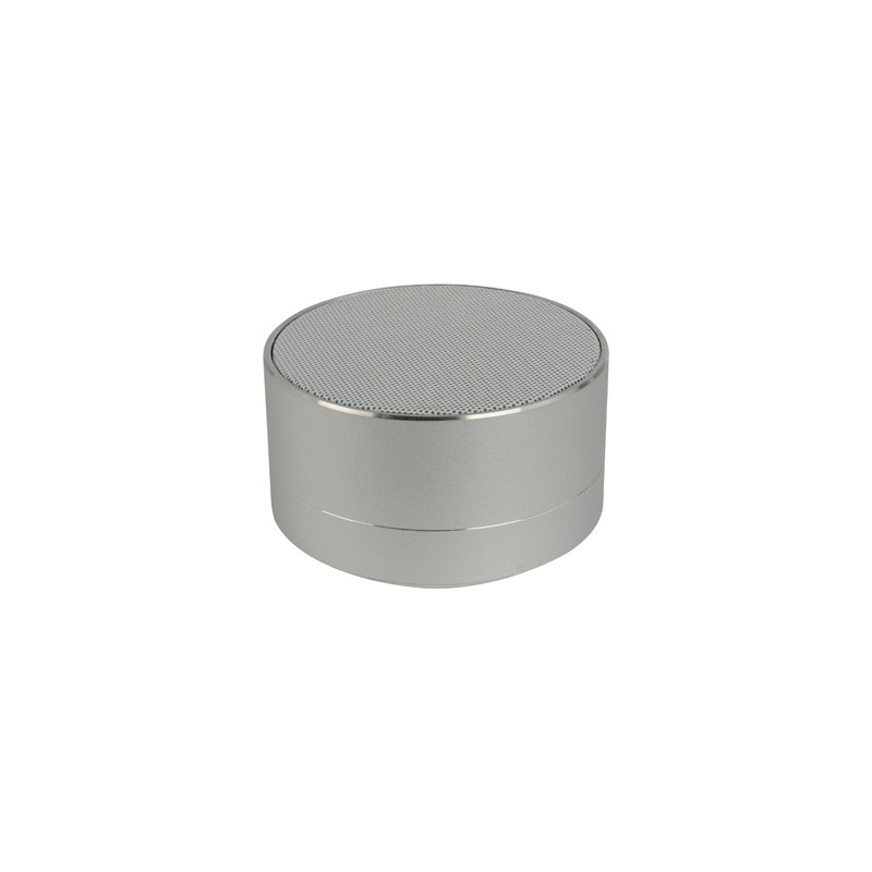 Bluetooth speaker with contrasting aluminium alloy case, auxiliary line input to allows access to smartphones, PC and notebook, built-in 400 mAh Lithium-ion battery, hands-free function, LED power and charge indicators. TF card reader (optional extra cost). Includes 3.5 mm audio cable, USB charge cable and user manual. Material: Aluminium, ABS...