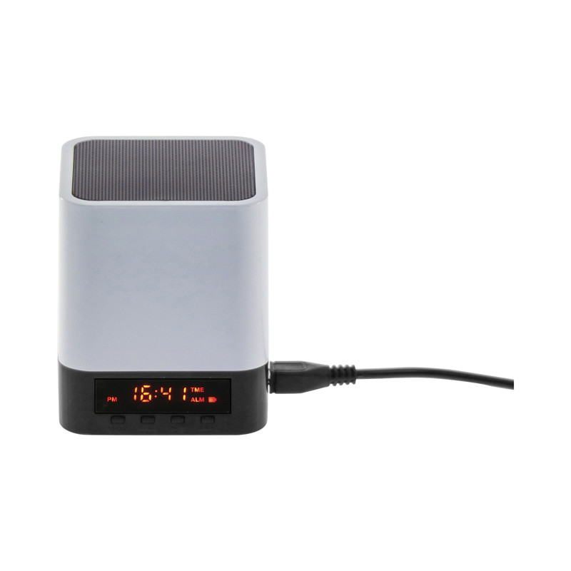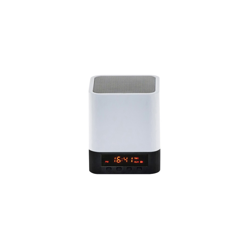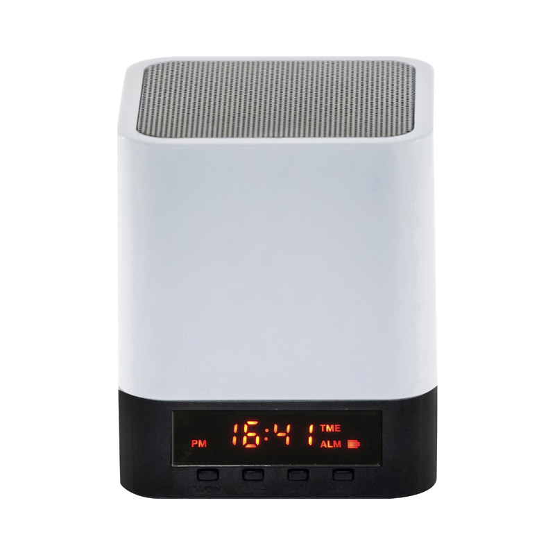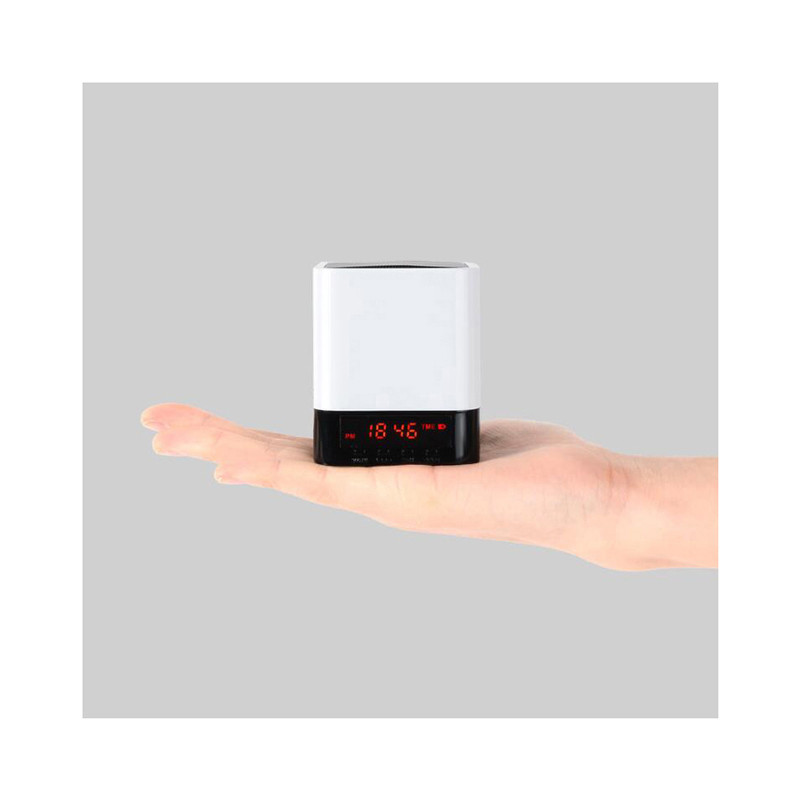 Stylish high fidelity wireless Bluetooth speaker with larger clock display and contrasting fabric front panel. This ideal desktop accessory provides a 3 watt output, auxiliary line input, hands-free function, USB and TF card player input, auto search FM radio and alarm clock radio. Includes combined USB charge, auxiliary and antenna cable, rechargeable...
