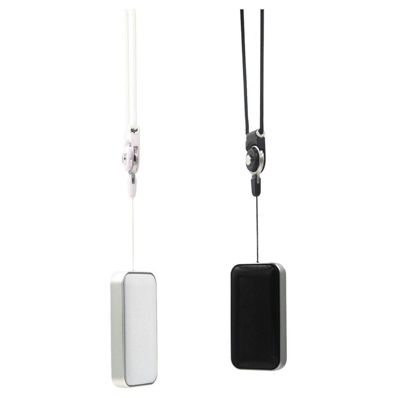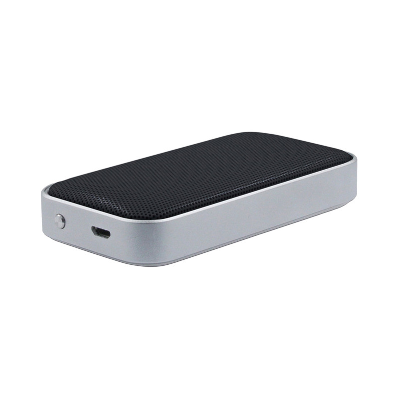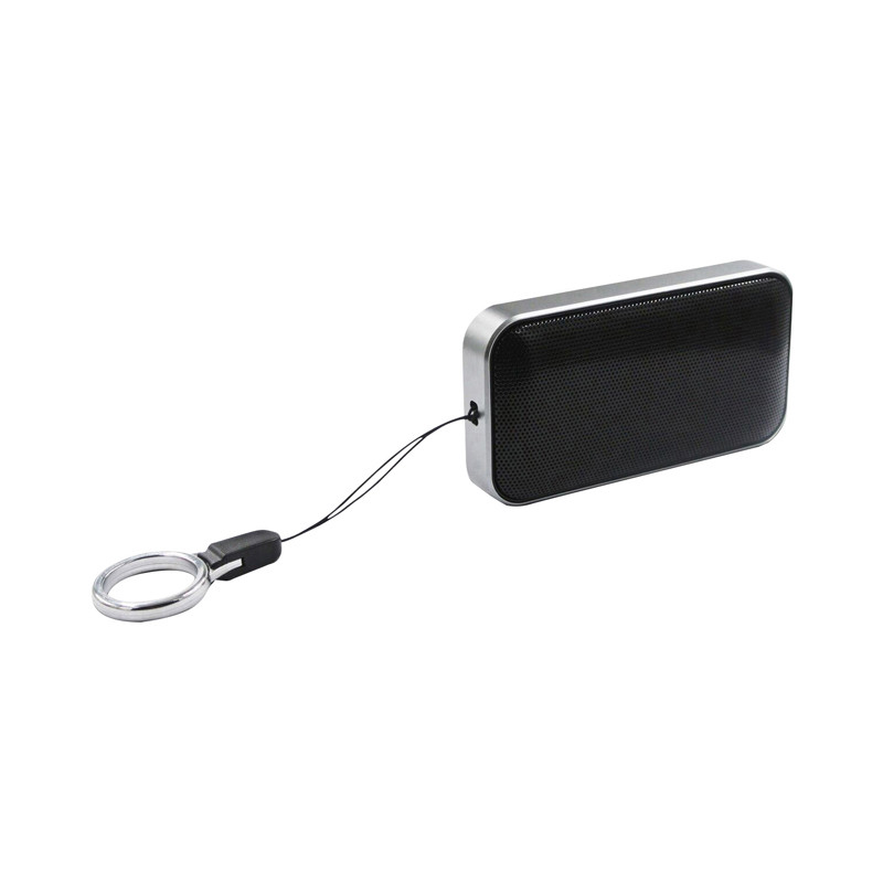 Bluetooth speaker with contrasting aluminium alloy case, auxiliary line input to allows access to smartphones, PC and notebook, built-in 400 mAh Lithium-ion battery, hands-free function, LED power and charge indicators. TF card reader (optional extra cost). Includes 3.5 mm audio cable, USB charge cable and user manual. Material: Aluminium, ABS...