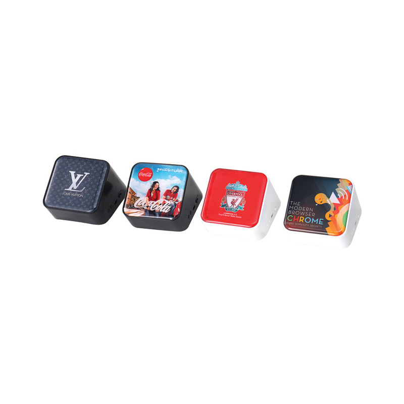 This compact Mini Cube Bluetooth speaker delivers high fidelity sound! Available with a 3 position light-up logo or printed branding options, the Mini Cube will undoubtedly be noticed. Comparing favourably in the sound department with other 3 watt speakers, the Mini Cube with its external loop and carabiner is an ideal travel partner. Includes micro USB...