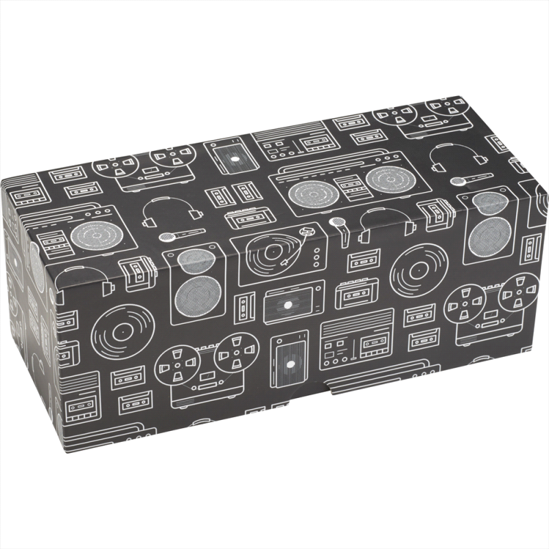 Compact, portable and chic. Its time for your tunes to travel in style. Designed to resemble an old Venice surfer wagon these compact speakers will add a bohemian vibe to any of your gatherings. Built with a 3-watt speaker and a rechargable 400mAh battery, and presented in a beautiful retail gift box. Outer is ABS Material in wood looking, not real wood.