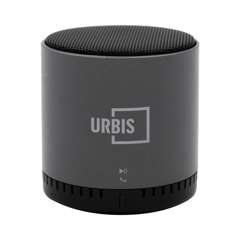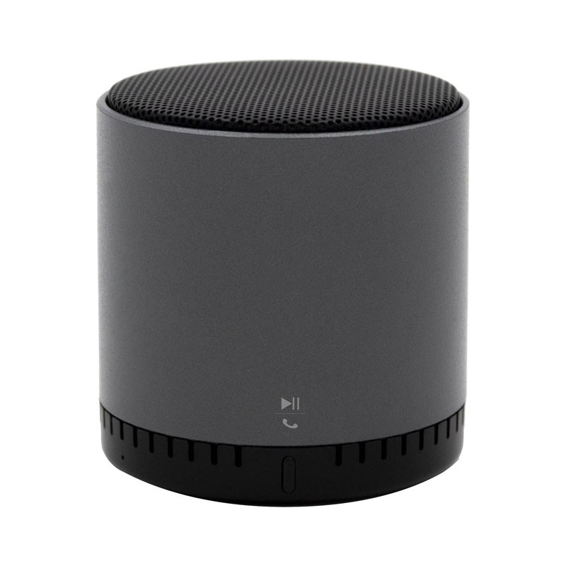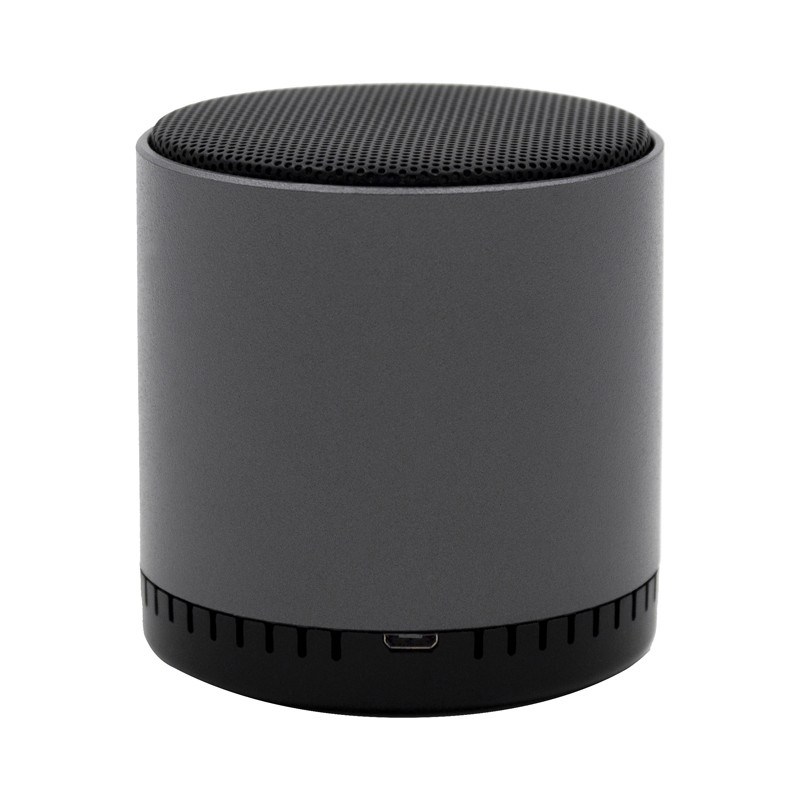 Bluetooth speaker with contrasting aluminium alloy case, auxiliary line input to allows access to smartphones, PC and notebook, built-in 400 mAh Lithium-ion battery, hands-free function, LED power and charge indicators. TF card reader (optional extra cost). Includes 3.5 mm audio cable, USB charge cable and user manual. Material: Aluminium, ABS...